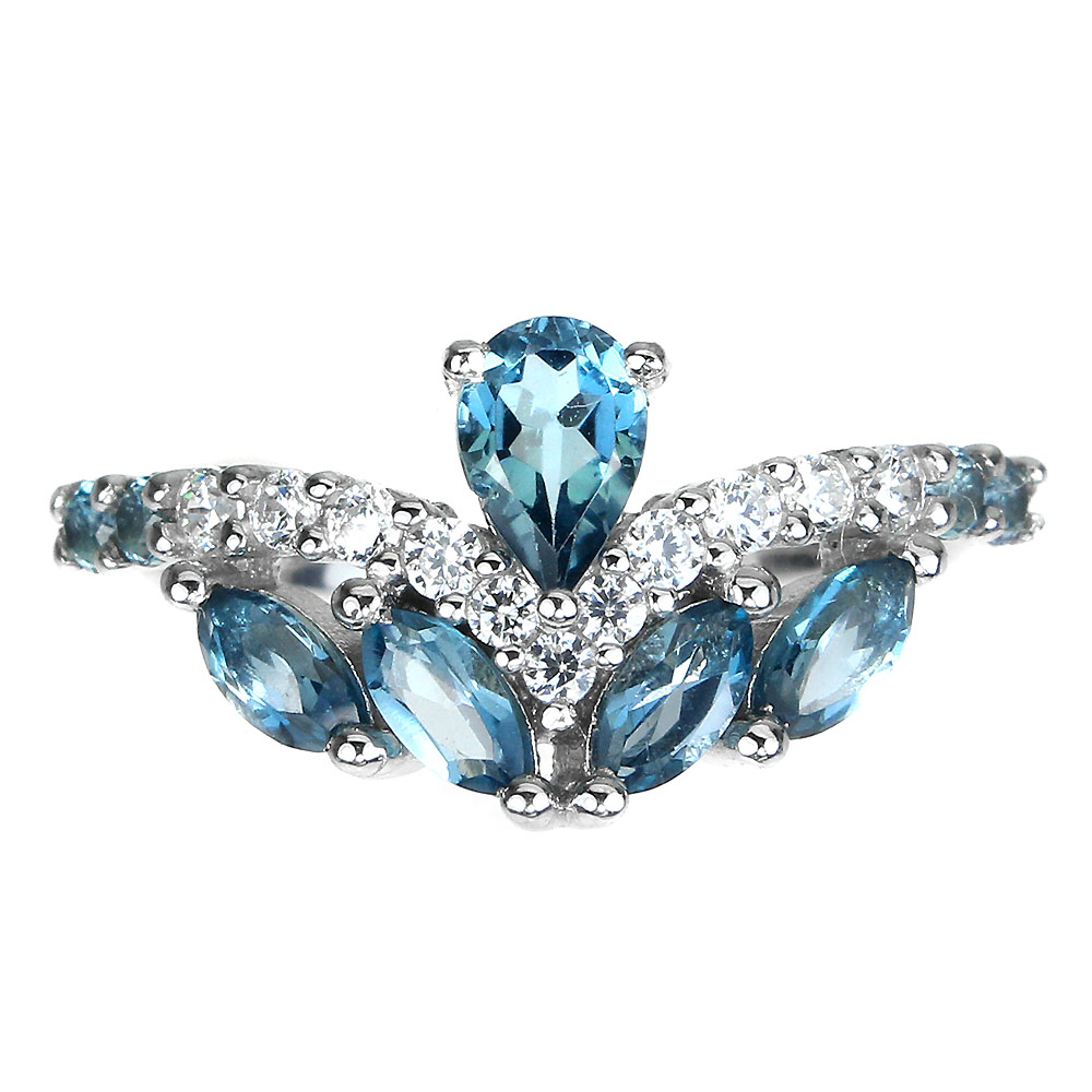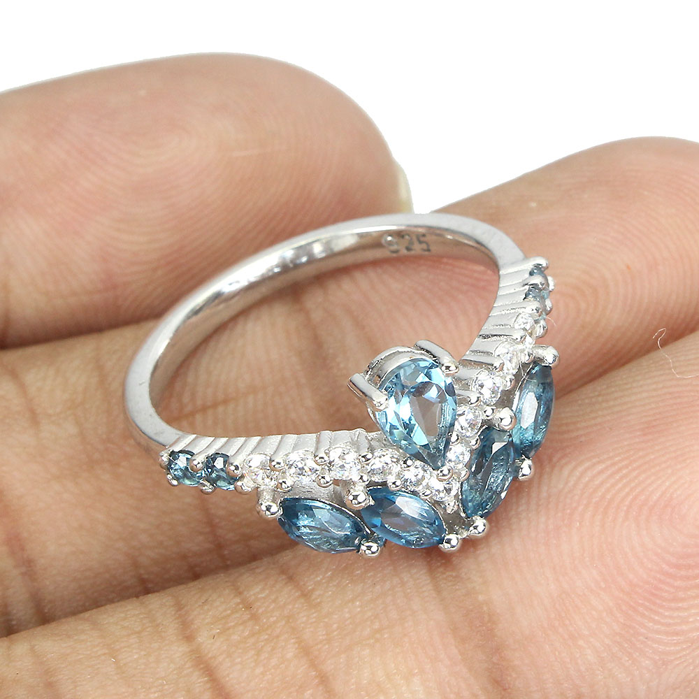 Irradiated Pear London Blue Topaz 6x4mm Simulated Cz 925 Sterling Silver Ring 8