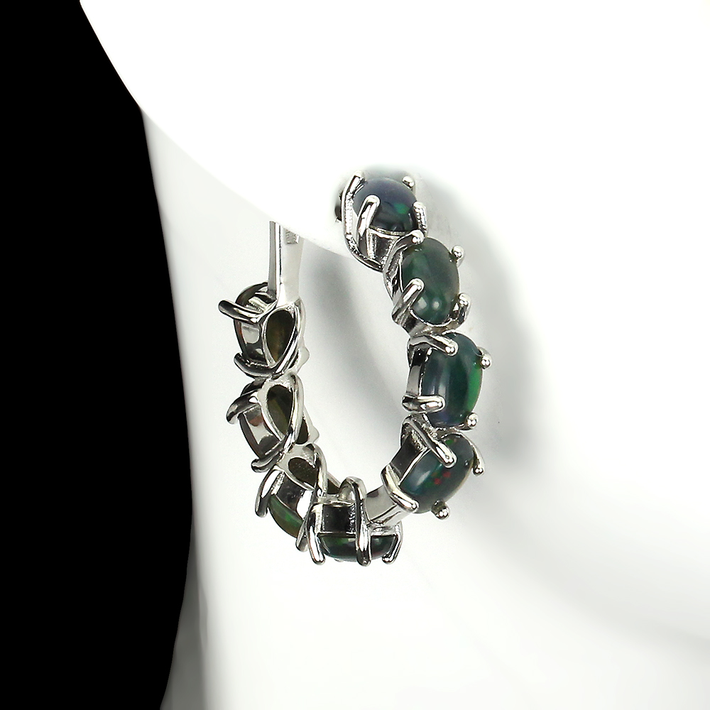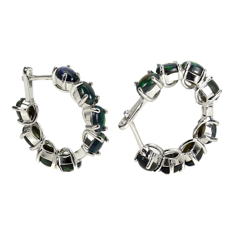 Clarity Enhanced Oval Black Opal Hot Rainbow 6x4mm 925 Sterling Silver Earrings