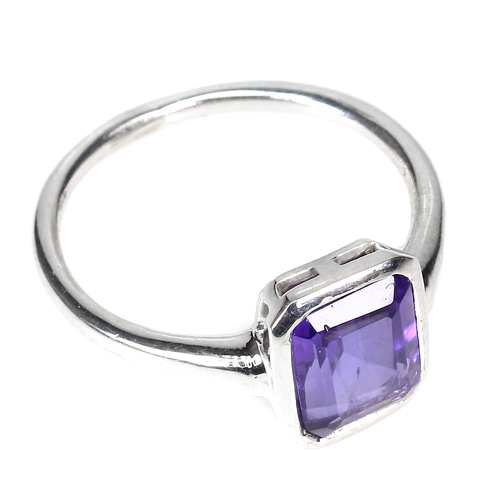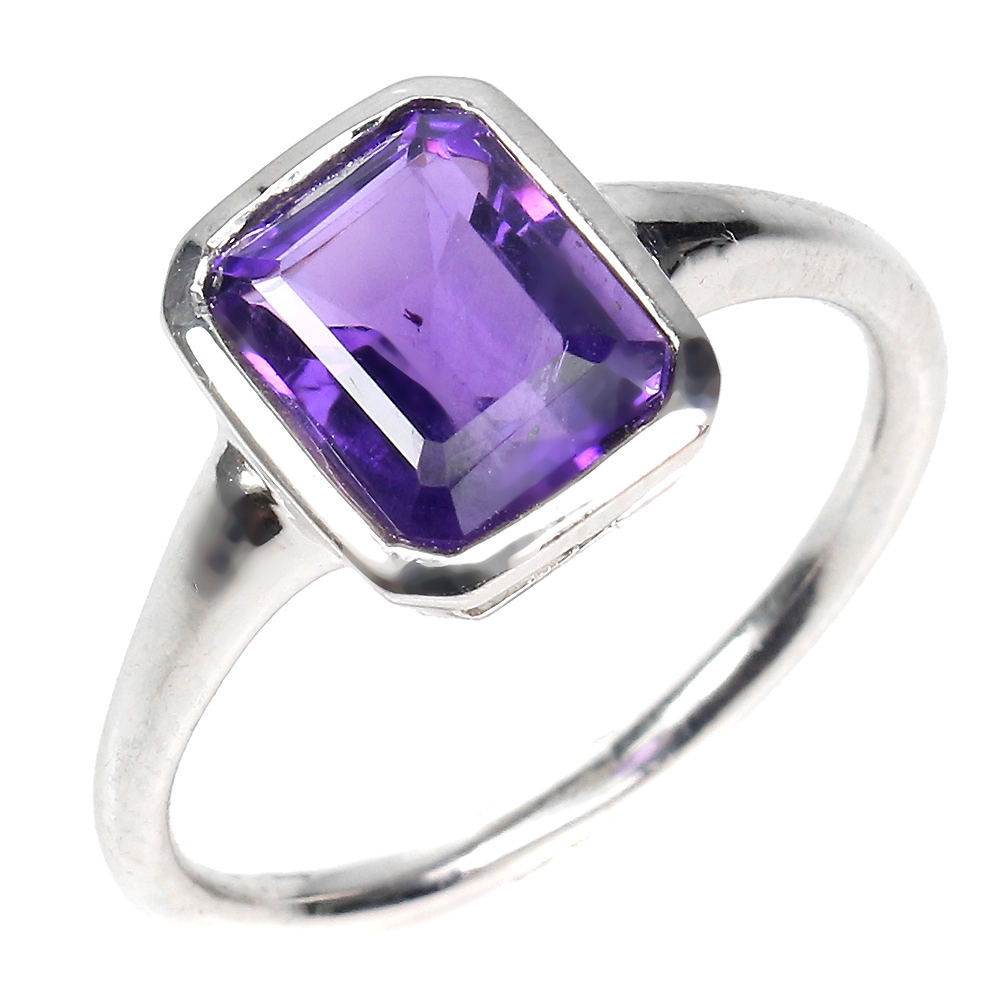 Unheated Octagon Amethyst 9x7mm 14K White Gold Plate 925 Sterling Silver Ring 7