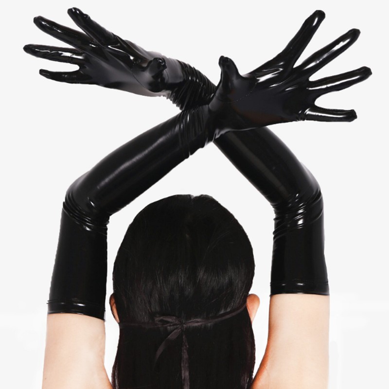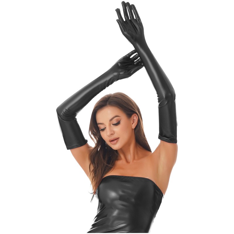Glossy appearance long gloves, well match with leather dress, leather catsuit or other performance costume.