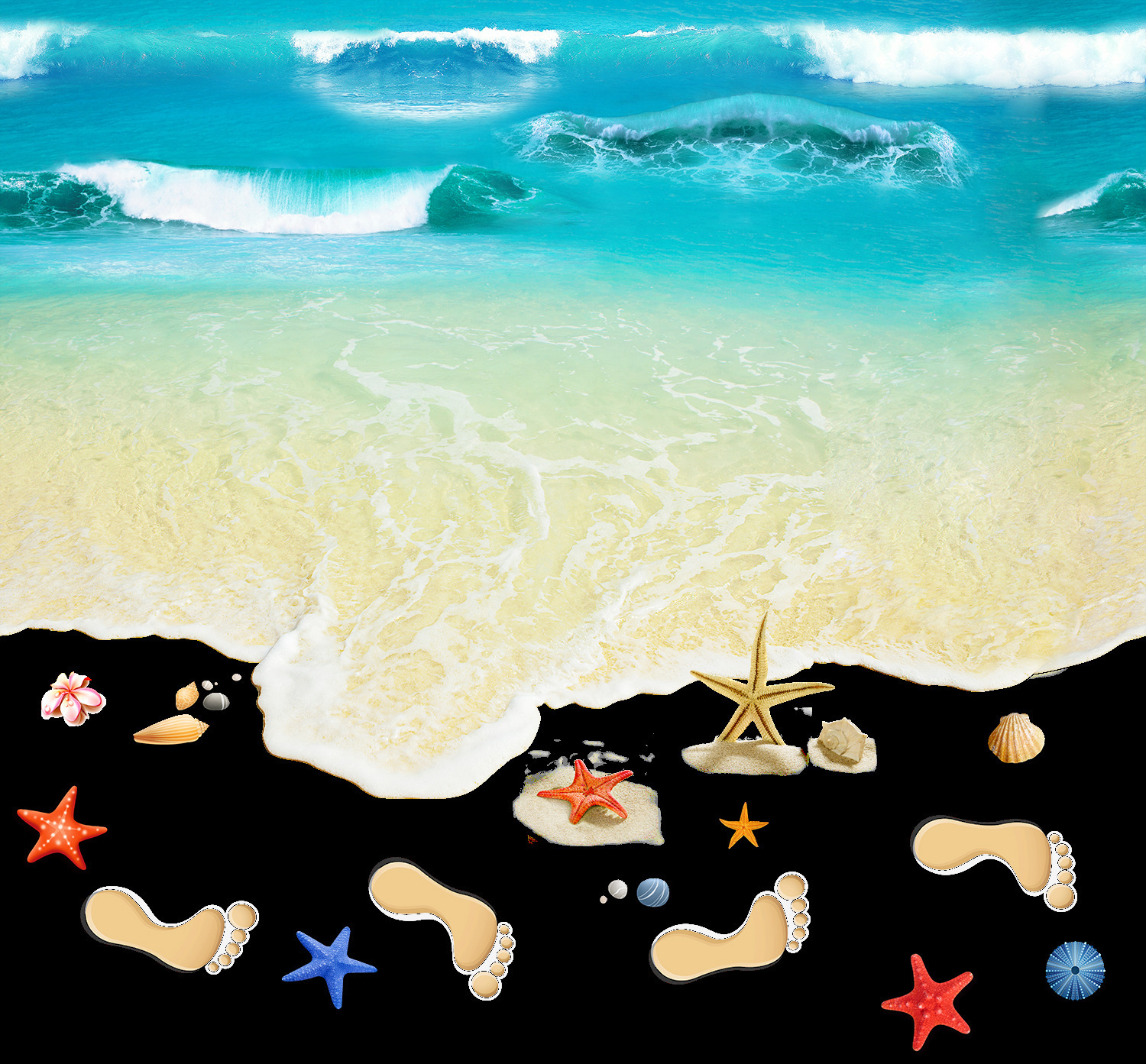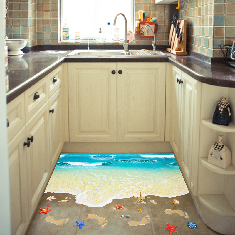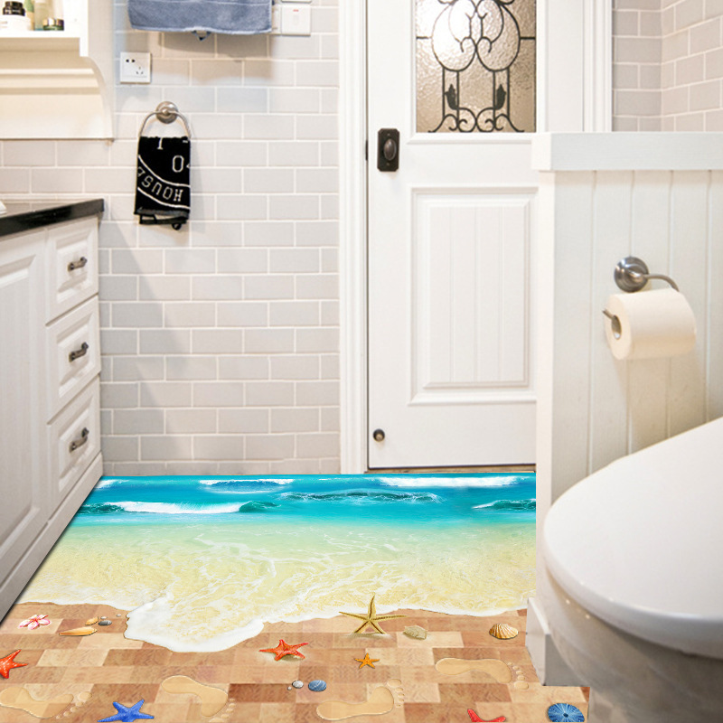 3D Beach Floor Stickers Starfish Footprint Bathroom Floor DIY Art Sticker Decor