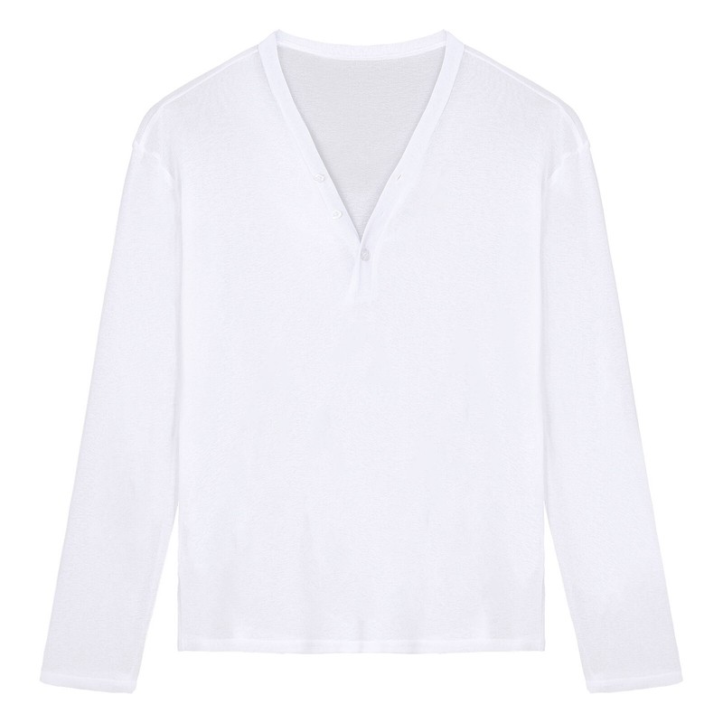 V neck with button, long sleeve, semi see-through design males you more charming.
