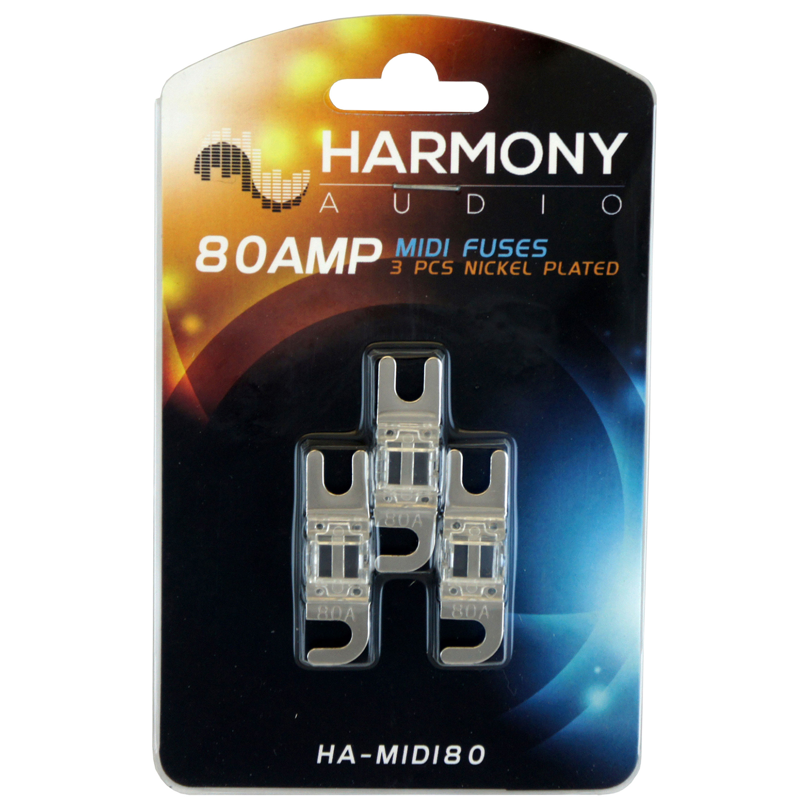 - 1 x Harmony Audio HA-MIDI80 Car Stereo Fuseholder 3 Pack 80 Amp MIDI Fuses - Nickel