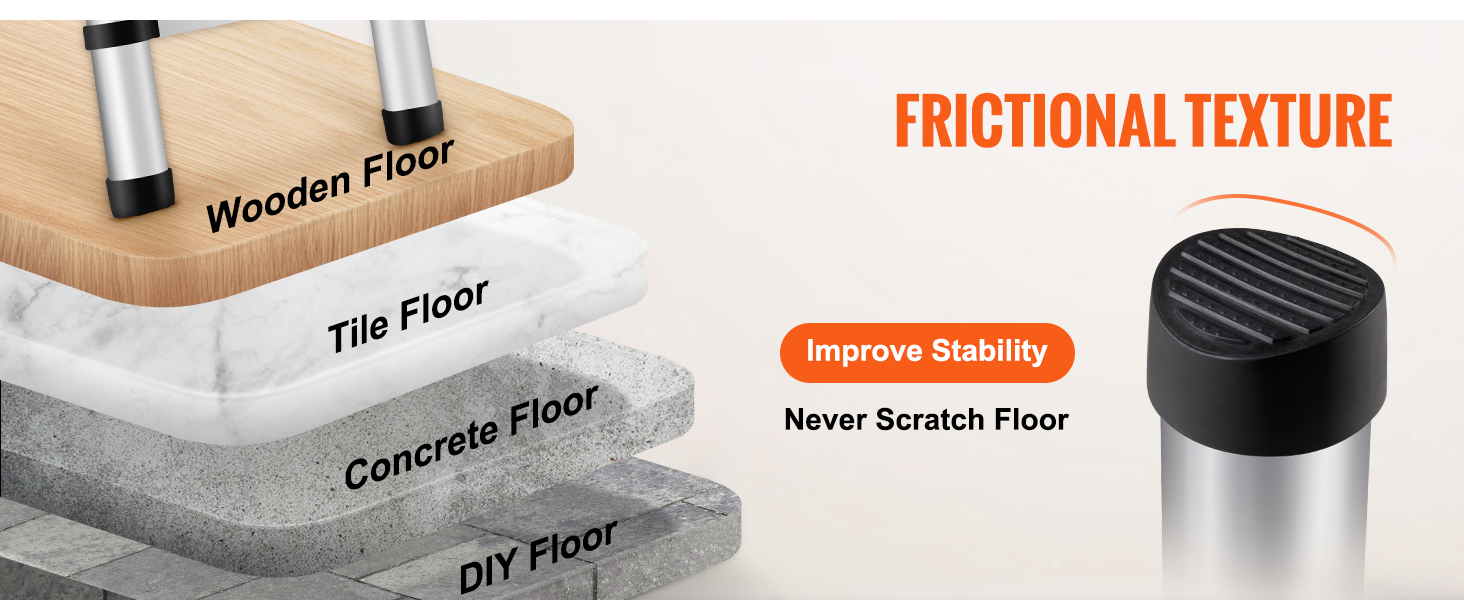 always strives to achieve a perfect user experience. We have upgraded the ladder weight capacity to an outstanding robust 375 lbs compared to other traditional models. The shake-proof step interface and non-slip sleeve provide maximum protection. It is a good helper at any height.