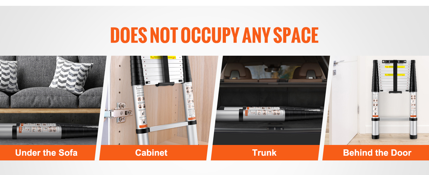 - Lightweight and easy to carry, KFFKFF's 12.5 ft telescopic ladder is perfect for female users too. It can be stored anywhere, including under the sofa, behind the door, or in the car's trunk. Upgrade your arsenal with this portable and space-saving ladder!