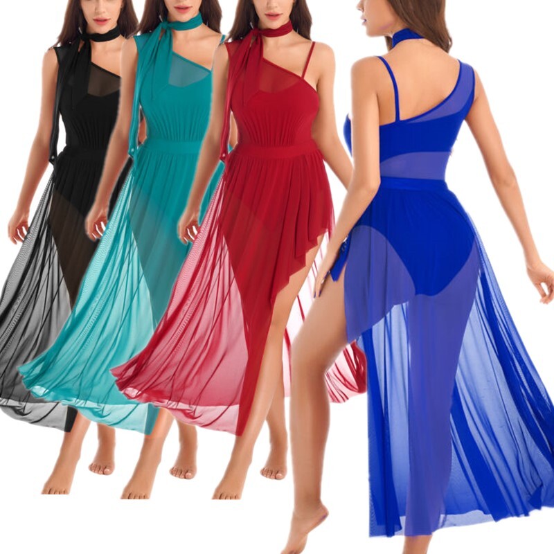 Attached with side split mesh skirt at the waist, show the elegance and beauty of dance.