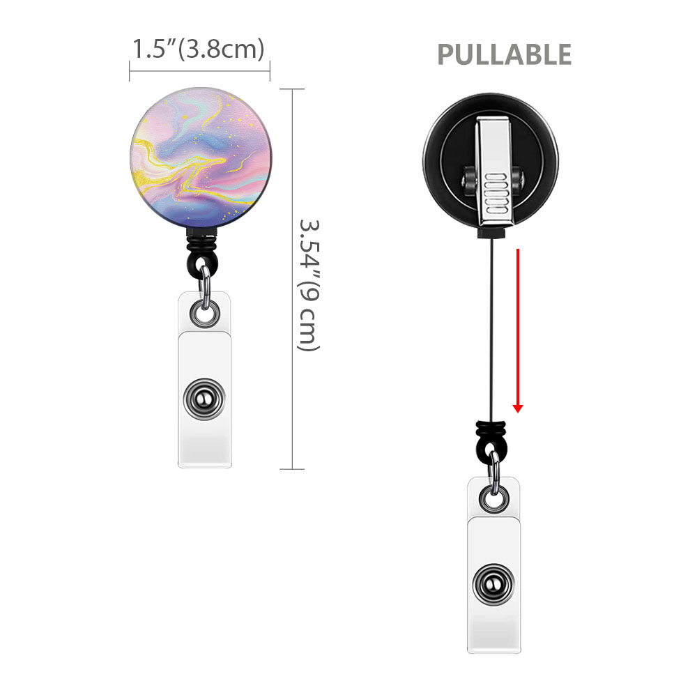 These colorful badge holder reels with alligator clips which are made of high-quality acrylic material and beautifully designed in one side are lightweight, long-lasting, stylish and can be reused for many times.
