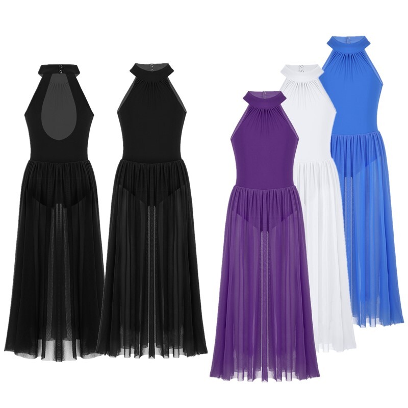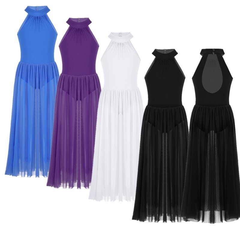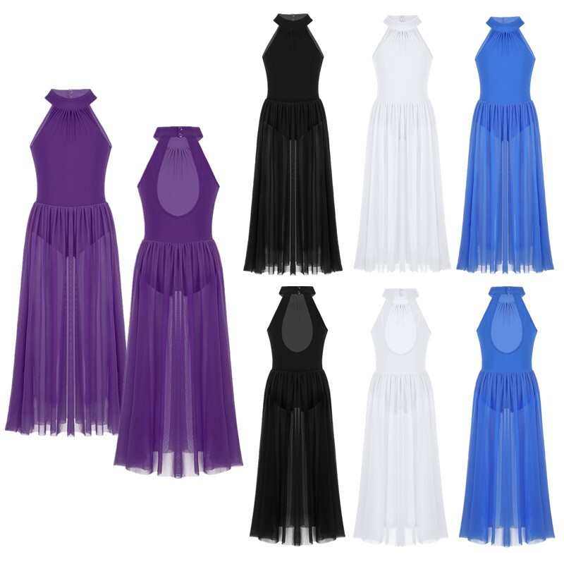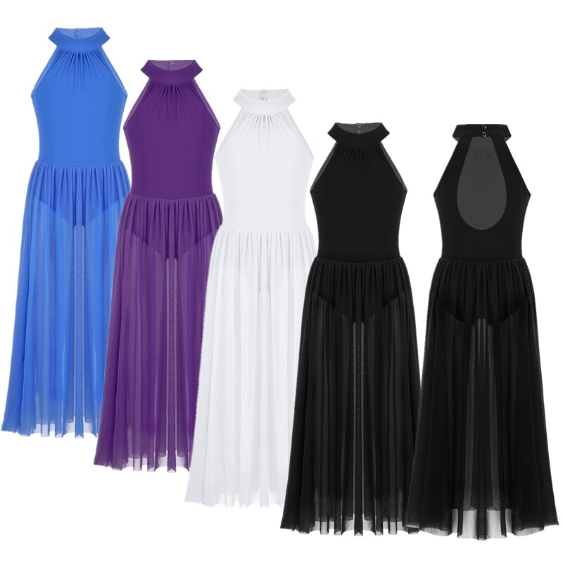 Dance leotard dress is made of polyester and mesh material, hand wash.