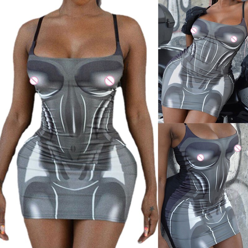 Women One-piece Strapless Mini Dress Semi See-through Bodycon Dresses.