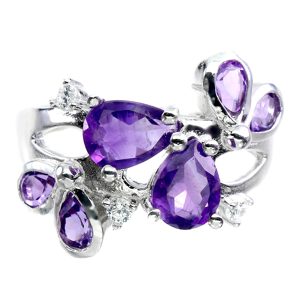 Unheated Pear Amethyst 7x5mm Cz 14K White Gold Plate 925 Sterling Silver Ring 8