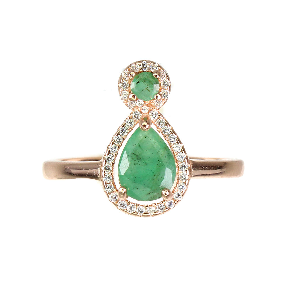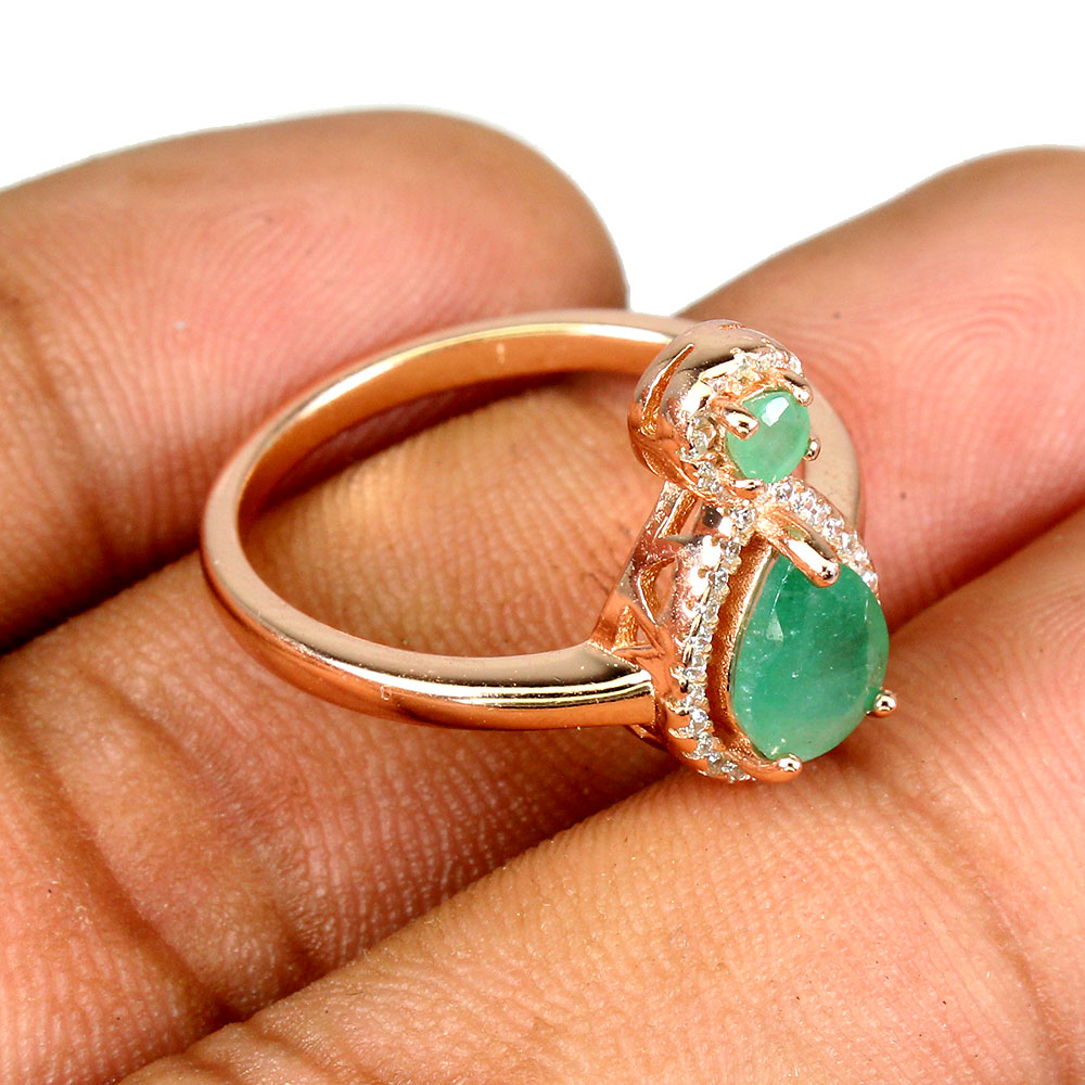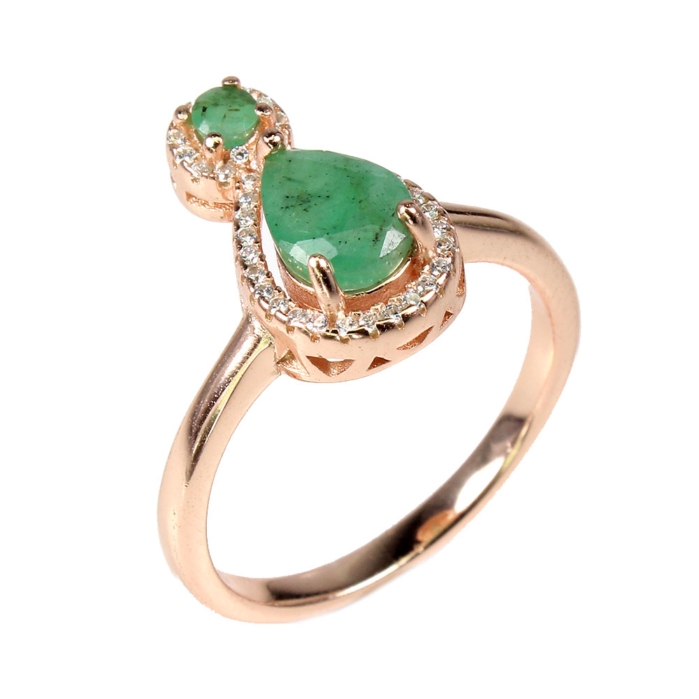 Unheated Pear Green Emerald 8x6mm Simulated Cz 925 Sterling Silver Ring Size 9.5