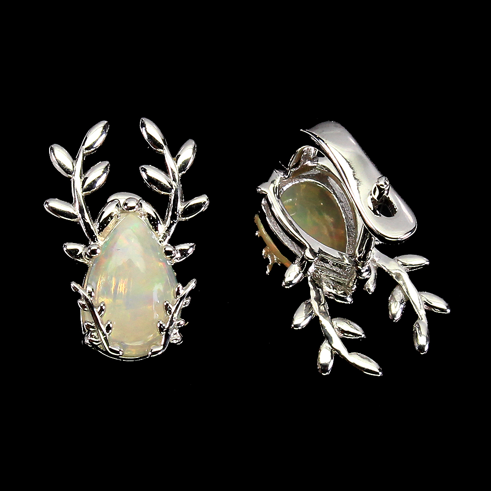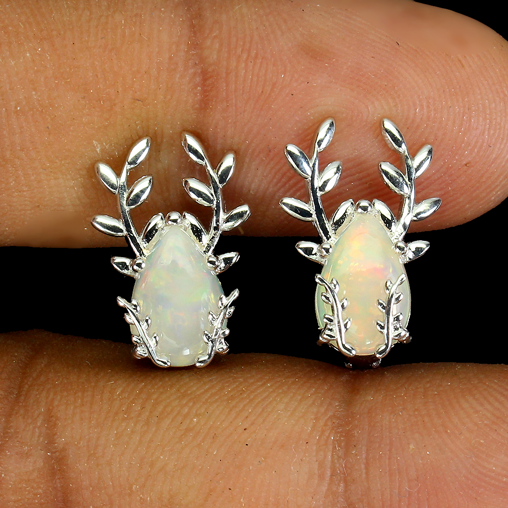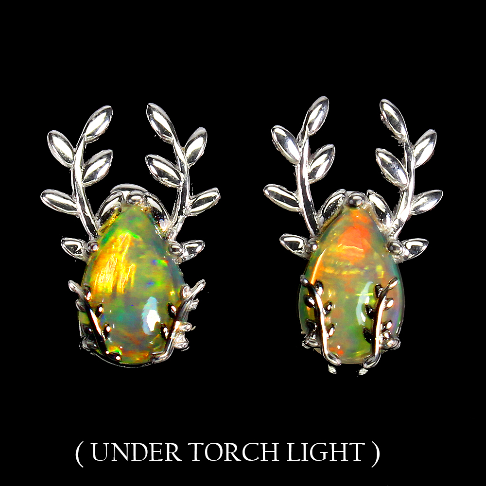 Unheated Pear Fire Opal Hot Rainbow Luster 10x7mm 925 Sterling Silver Earrings