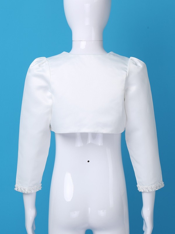 Kids girls pure color long sleeve open front bolero pearls sequins beaded shrug cardigan wedding event dress accessories.