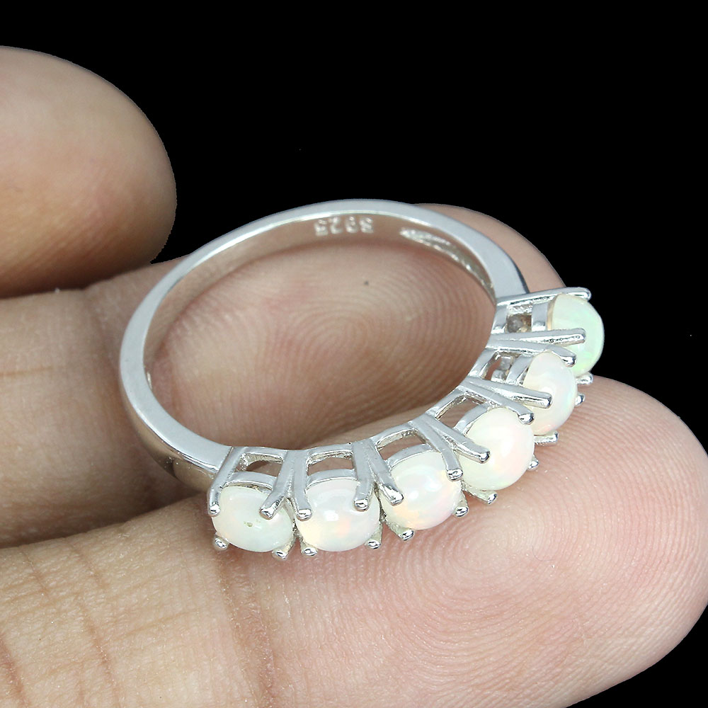 Unheated Oval Fire Opal Rainbow Full Flash 4mm 925 Sterling Silver Ring Size 8