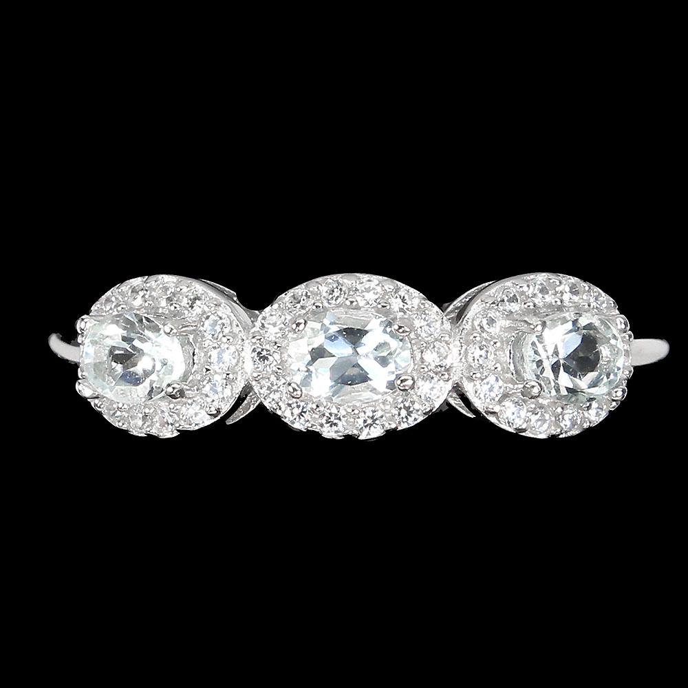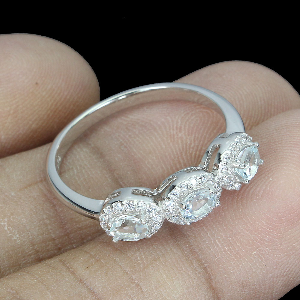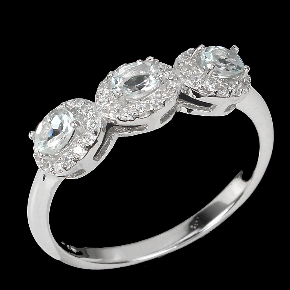 Unheated Oval Blue Aquamarine 4x3mm Simulated Cz 925 Sterling Silver Ring Sz 9.5