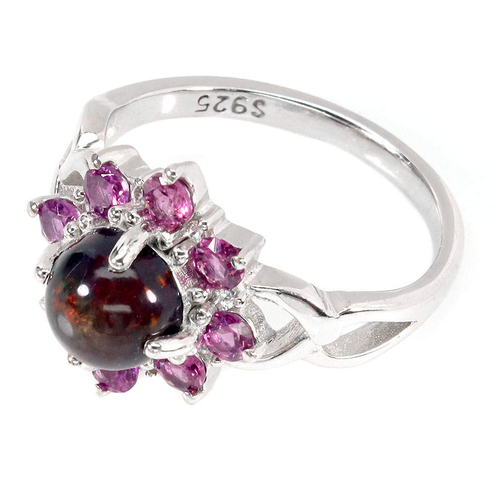 Clarity Enhanced Round Black Opal 7mm Rhodolite Gems 925 Sterling Silver Ring 7