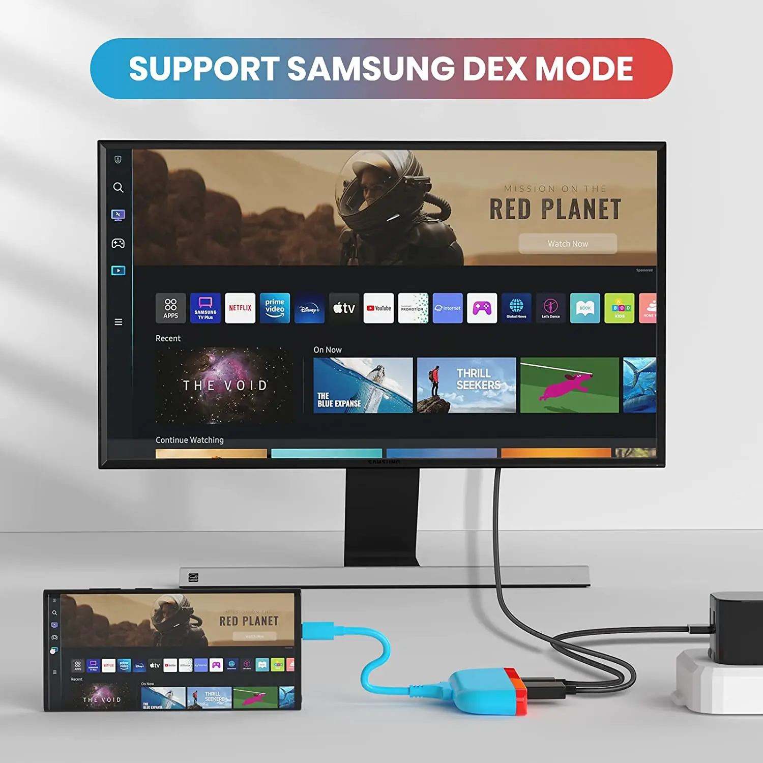 【Compatible with Samsung Dex Station】:Turn your phone into PC,So you can turn any place into a workplace and enjoy great video in huge TV or monitor anywhere. Used for Samsung Galaxy S10/S9/S8 Plus/Note 10/Note 9/Note 8,Tab S4/S5/S6 in Dex mode,and more devices equipped with standard USB 3.1 port. (NOTE: HDMI Cable and AC Adapter Not Included)