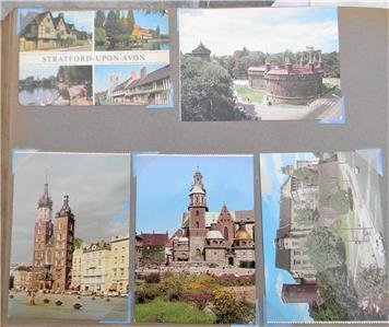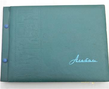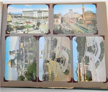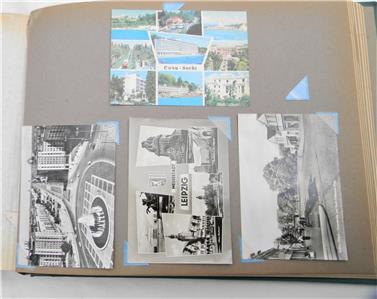 Vintage large "tabletop" style album assembled in the 1960th by a Soviet merchant navy sailor. The album contains roughly 160-170 post cards from various European countries; most cards are in excellent condition; they are not glued to the pages. Album size is about 16" x 12" x 2" or 41cm x 30.5cm x 5cm; weight is bout 7-8 lbs. The following countries are represented: