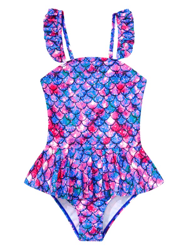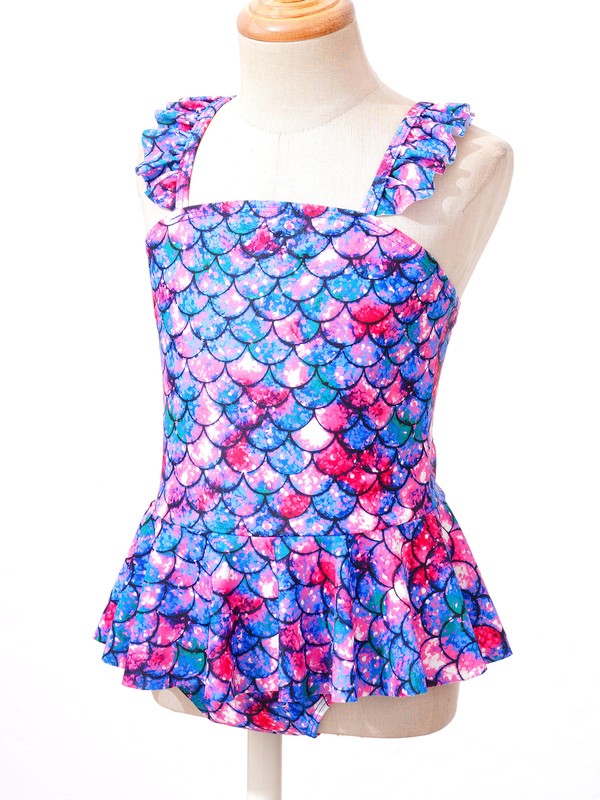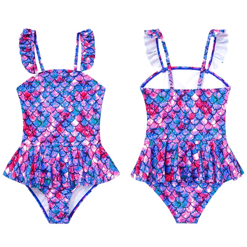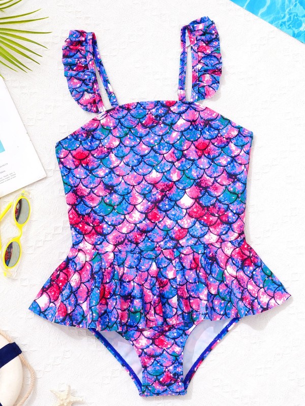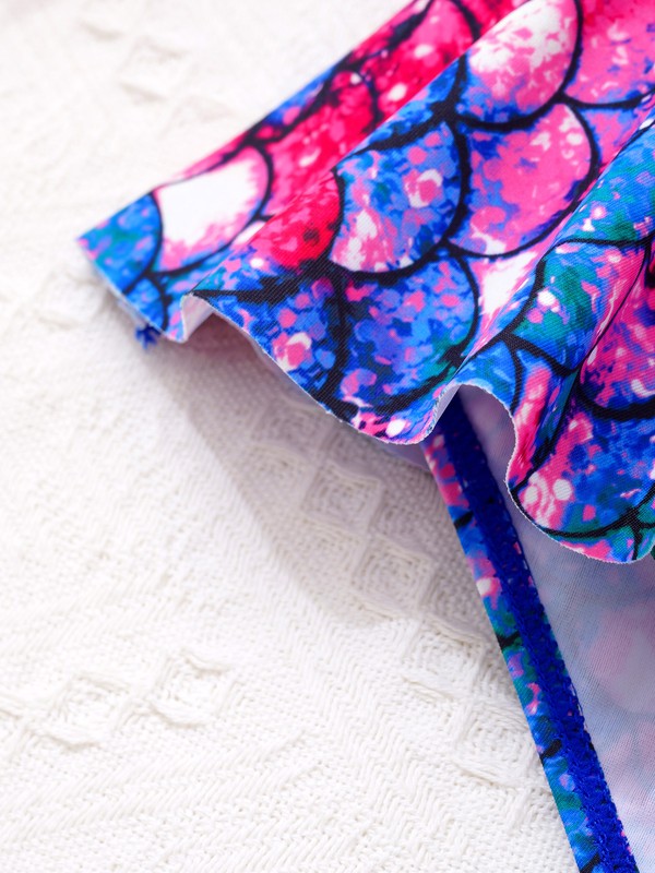Fish scales printed ruffle trim swimsuit makes your girl look like a mermaid