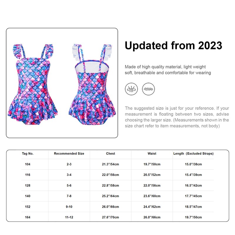 Adjustable shoulder straps for adjustment. Quickly-dry fabric ensures girls breathable and dry. .