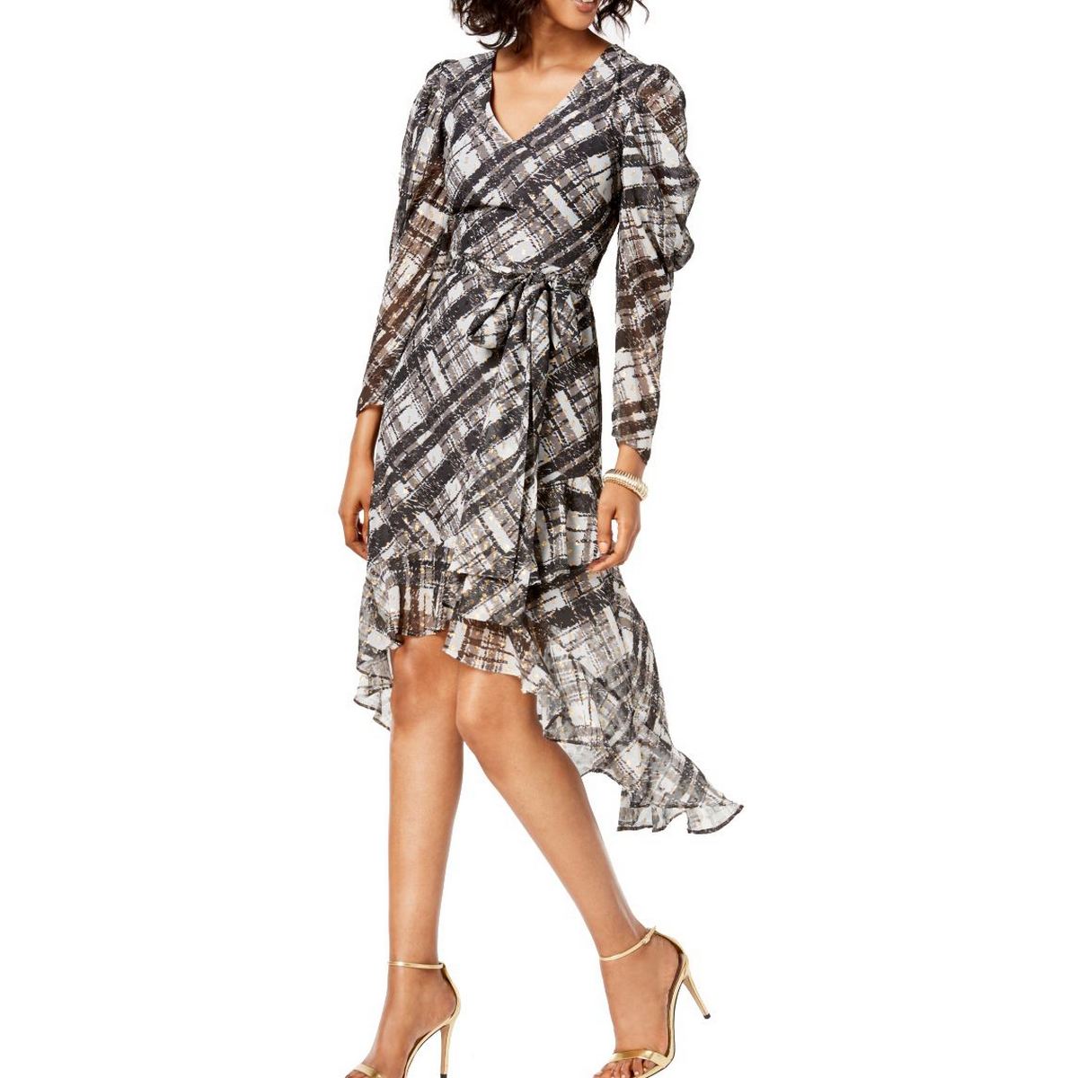 TAYLOR NEW Women's Gray Multi Metallic Plaid High-low Fit & Flare Dress 2 TEDO