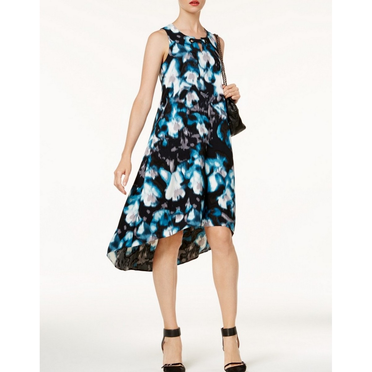 ALFANI NEW Women's Sleeveless Printed High Low Keyhole Shift Dress TEDO