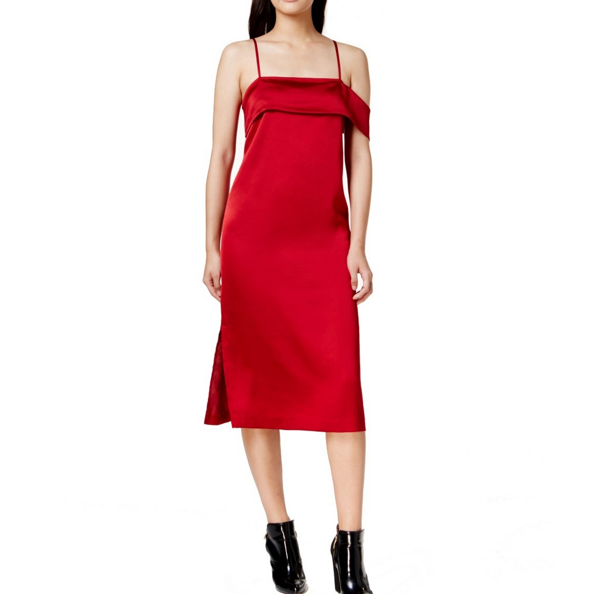 KENSIE NEW Women's Satin Cold-shoulder Midi Cocktail Slip Dress TEDO