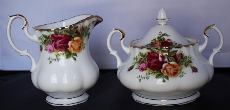 Vtg ROYAL ALBERT Cream & Sugar Bowl Set w/Lid OLD COUNTRY ROSES 1962