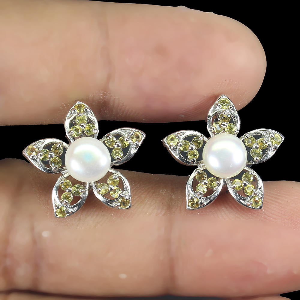 * STONE 2.0 MM. * PEARL 7.0 MM. * FACE EARRINGS 19.0 X 18.0 MM.