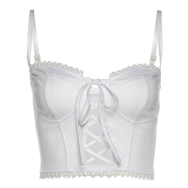 Women Lace-up Lace Trim Crop Top Adjustable Spaghetti Strap Tank Top Hollow Out Camisole.