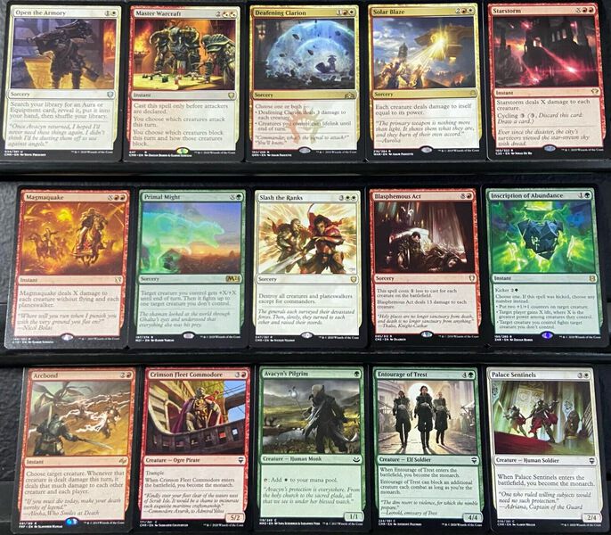 Removal and board wipes like Blasphemous Act, Starstorm, Magmaquake, and Slash the Ranks ensure you keep control of the board