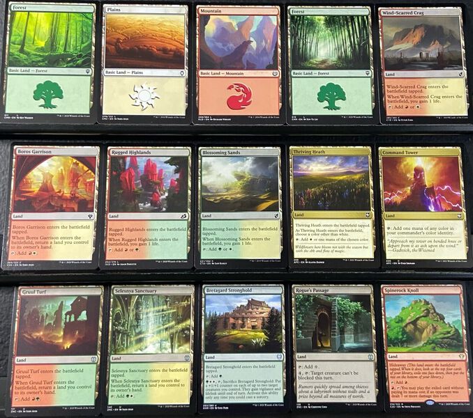 Lands like Selesnya Sanctuary and Gruul Turf help ensure you have the right colors