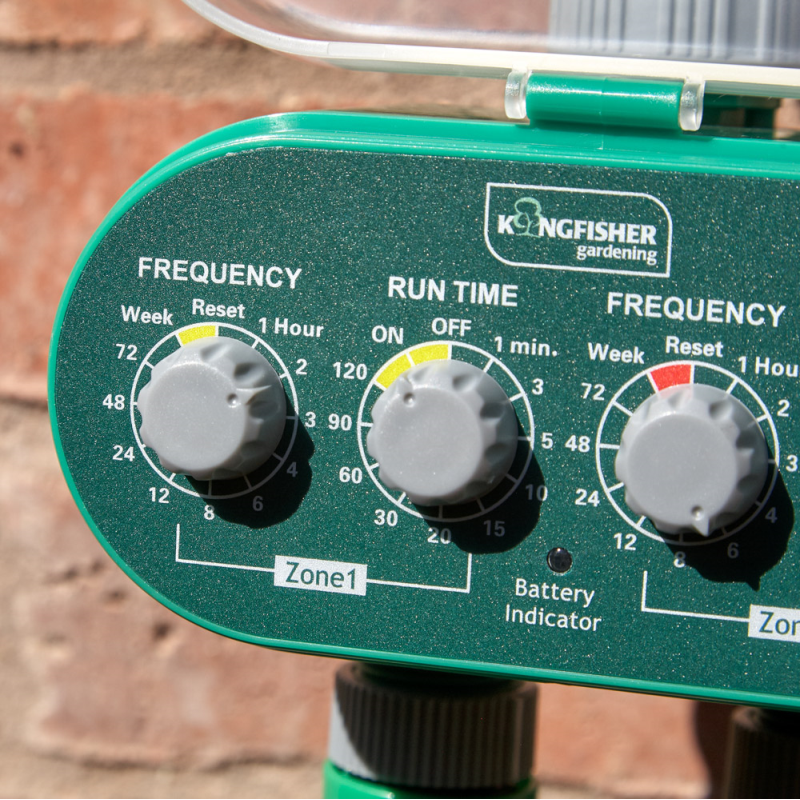 Description: Deluxe Twin Outlet Electric Automatic Garden Watering Timer Clock Features: - Battery Operated Electronic Water Timer - Twin outputs meaning you can water different sections of the garden at different times - Up to 24 cycles per day - Requires 2 x AA batteries (not included) - Easily programmable with inline filter. - Adjustable watering frequency from 1 hour to 1 week and time from 1 minute to 2 hours - Compatible with most brands of water fittings: 3/4" or 1" outdoor taps - Weight: 0.521Kg