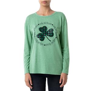 Fit: Relaxed Neckline: Crewneck Closure: Pullover style Sleeves: Drop shoulder long sleeves Pockets: None Features: Graphic at front Women’s St. Patrick’s Day Graphic Tee with Long Sleeves from Way to Celebrate