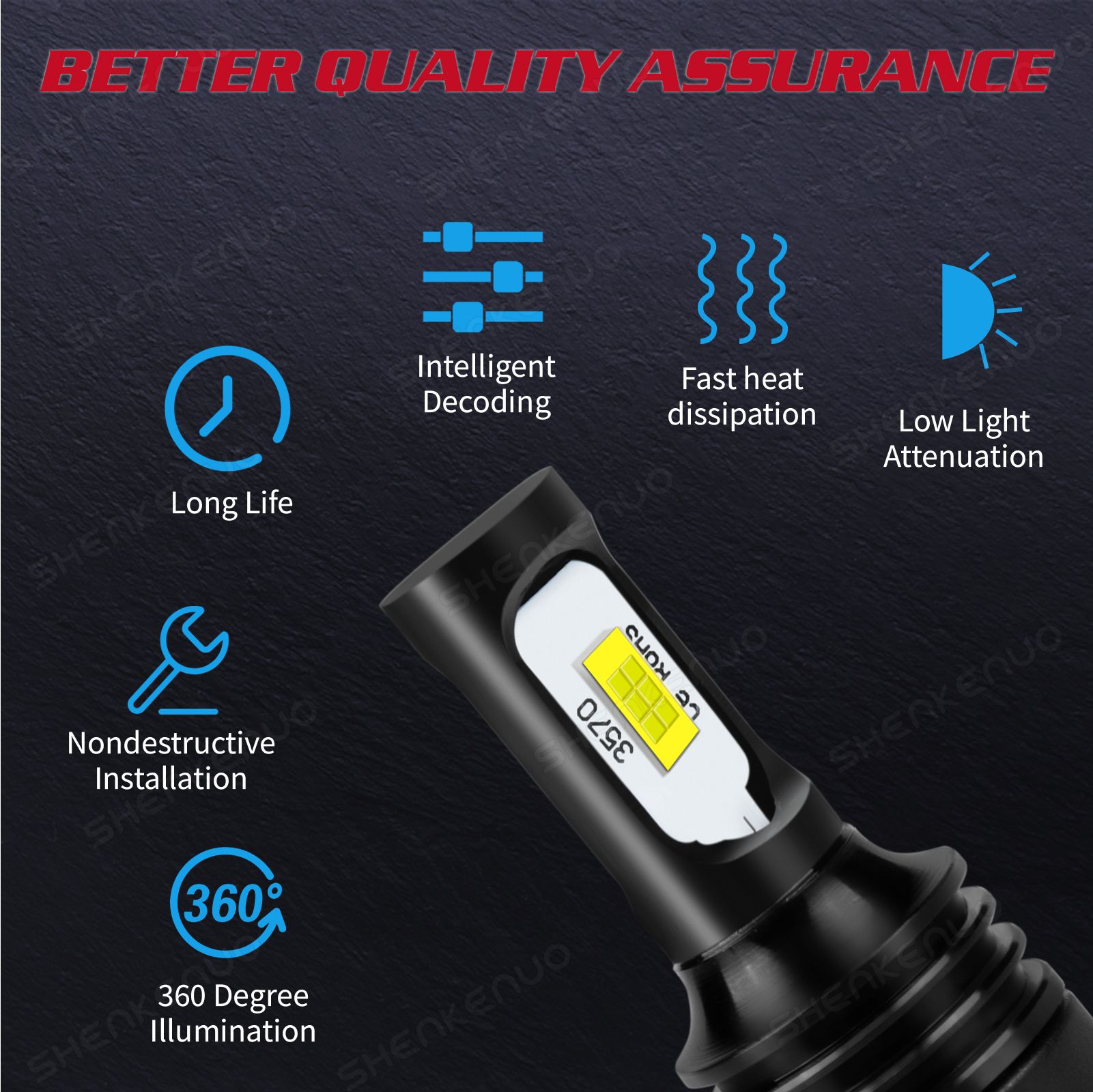 Upgrade 3570 CSP CHIP98% Vehicle Compatibility: Built-in newly upgraded smart 3570 CSP LED chip. No error free or radio interference issue for 98% vehicle's computer systems.But additional CANbus decoder might need for some sensitive vehicles. If you are not sure about that, please check with us. |
