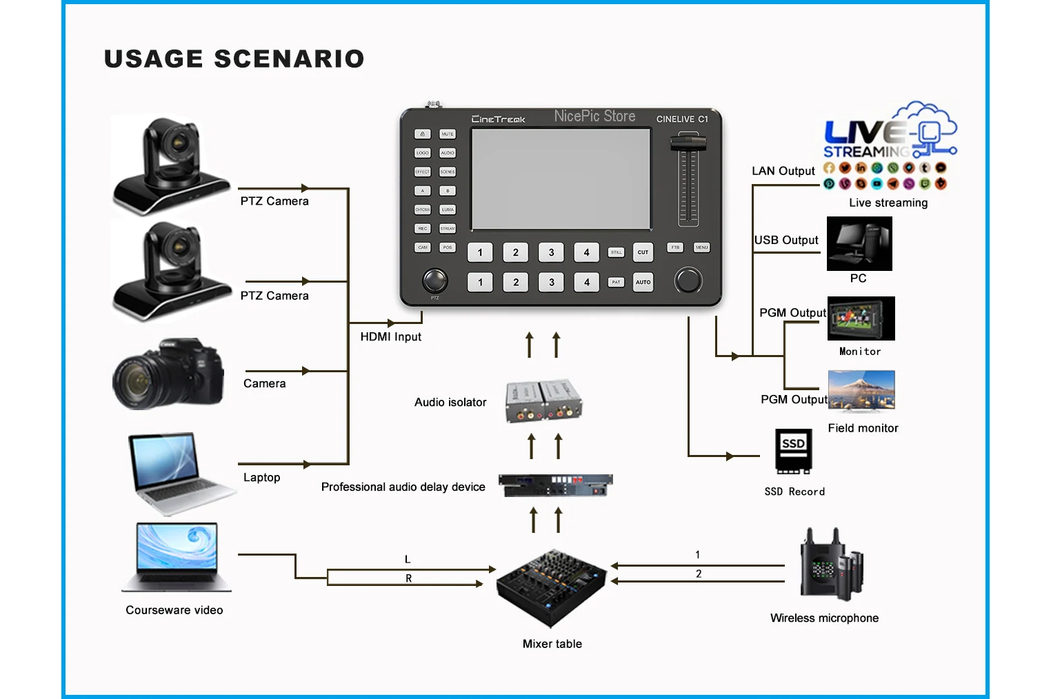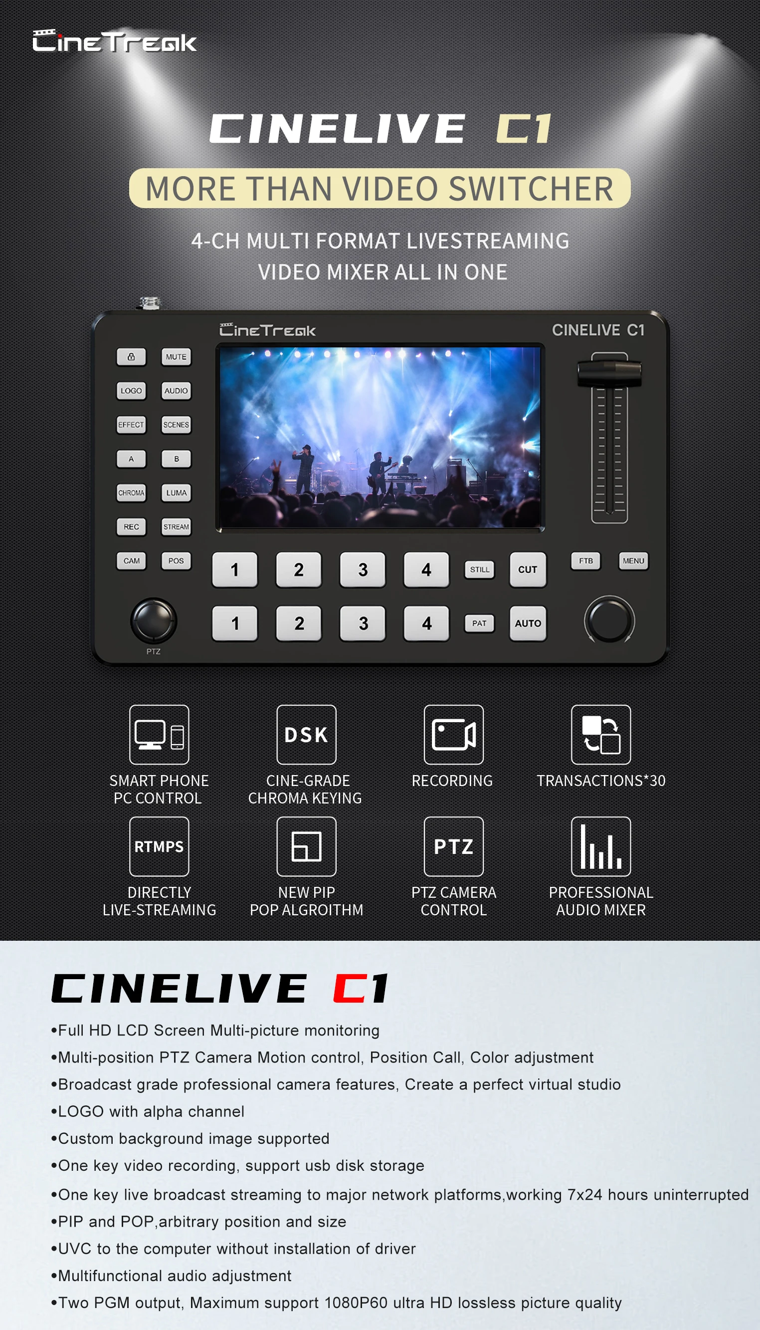 CineTreak CINELIVE C1 FHD 4-Channel Video Switcher Multi Format Live Streaming