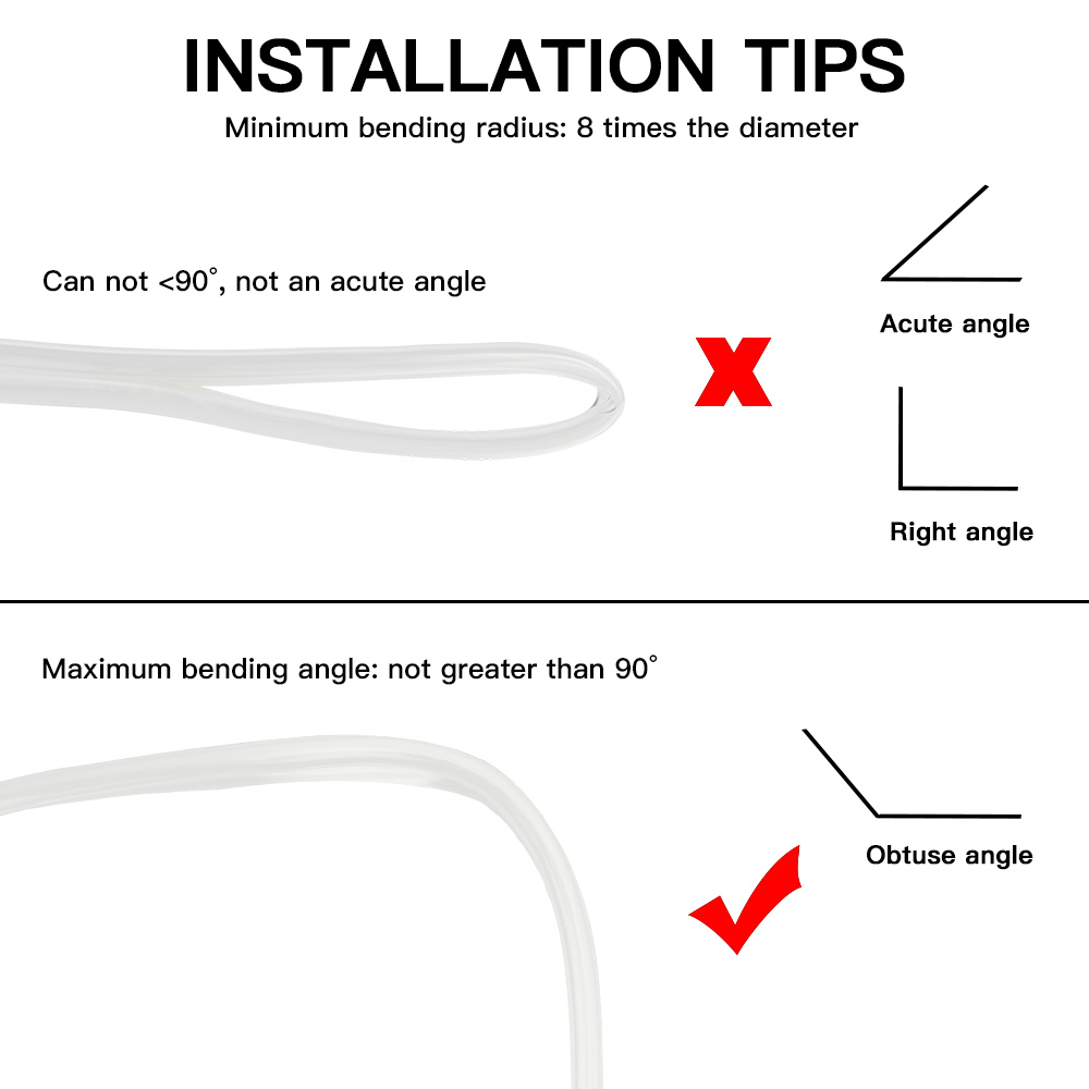 2.Der maximale Biegewinkel: darf nicht weniger als 90° betragen (<90°, kann kein spitzer Winkel sein), um eine Lichtdurchlässigkeit zu vermeiden.
