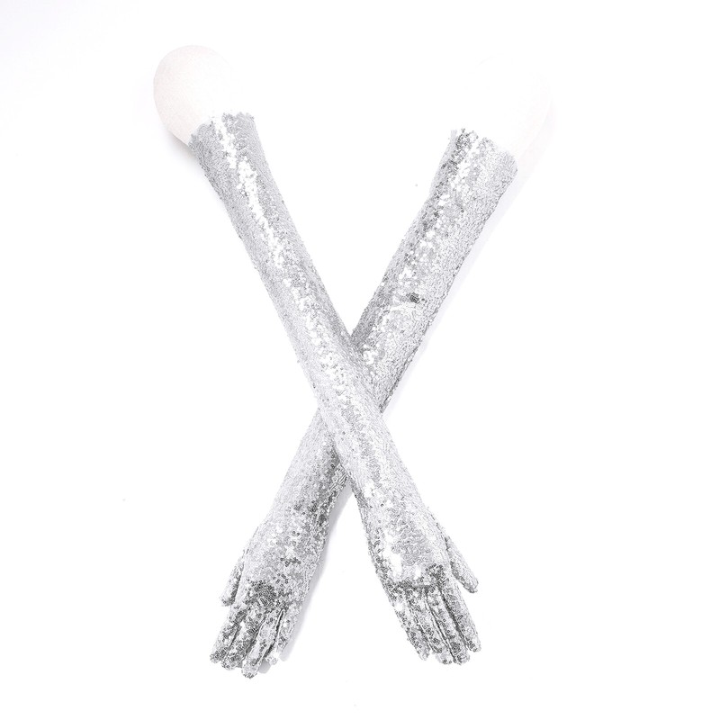 Womens Sparkly Sequin Long Opera Gloves Vintage Flapper Stretchy Long Gloves