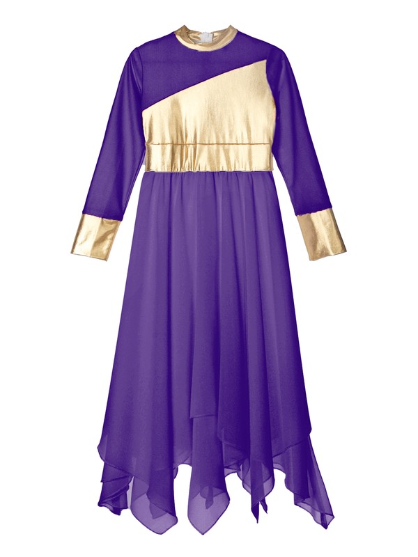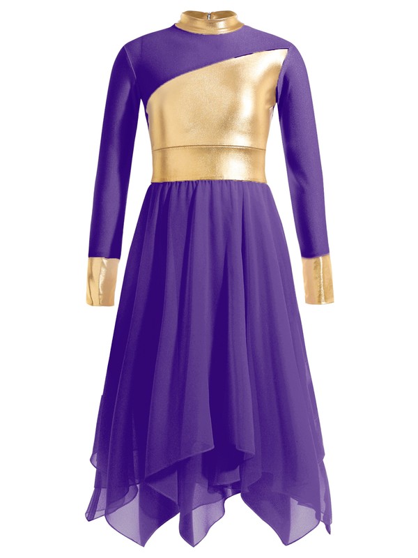 Design with long sleeve and round collar, fashion patchwork style with bronzing cloth.