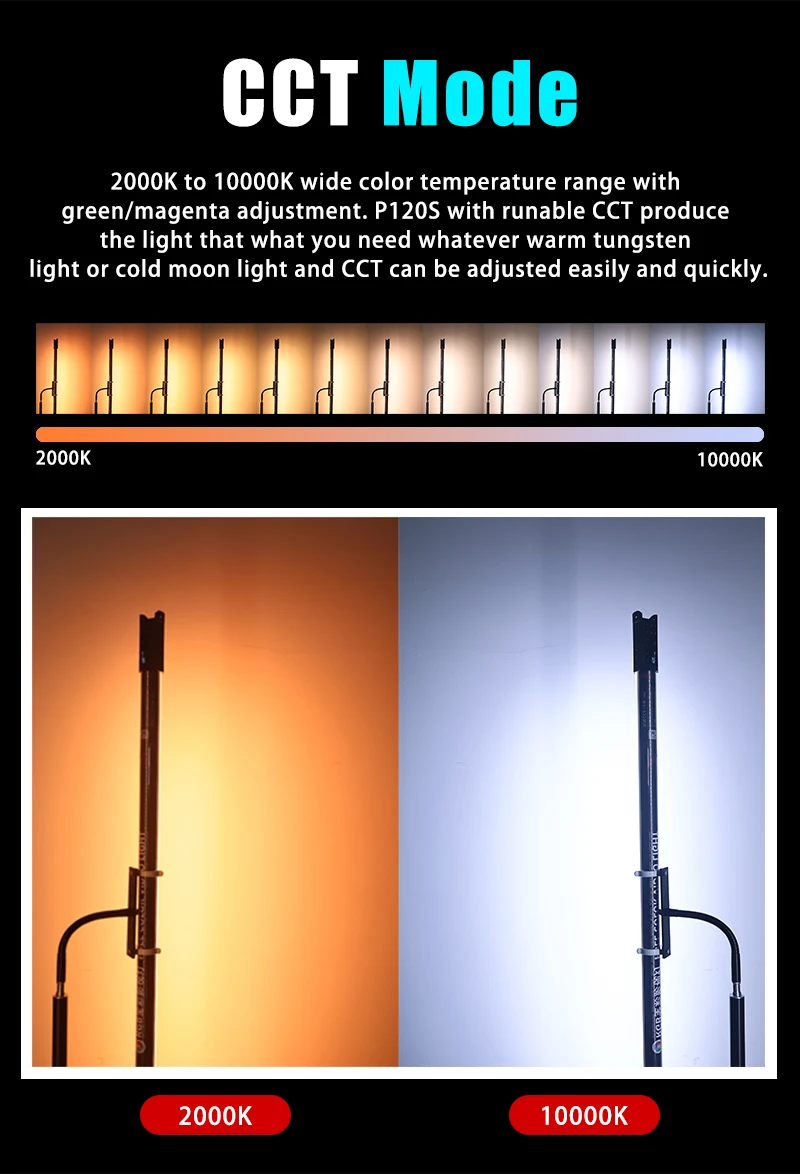 【CCT Mode】Wide color temperature from 2000K to 10000K, the light effect you really want can be precisely debugged out.