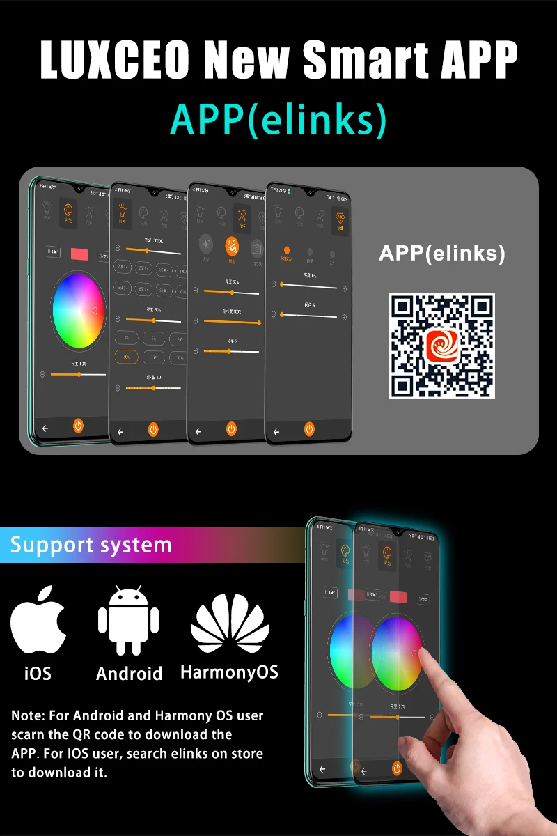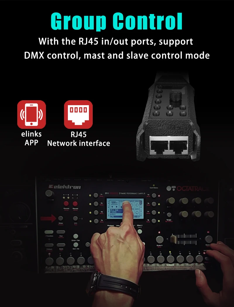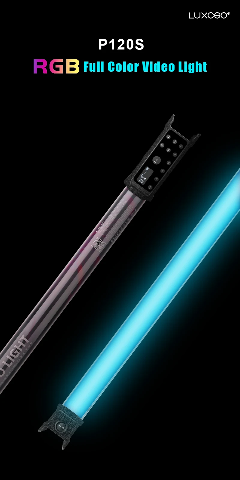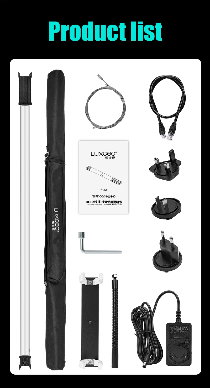 【3 Control Options, Dual Power Solutions】 LUXCEO P120S comes with a multitude of control options including on-board, Mobile APP(eLinks), or DMX control. Depending on the configuration you need and features both an internal lithium-ion battery as well as external AC power options to power the light
