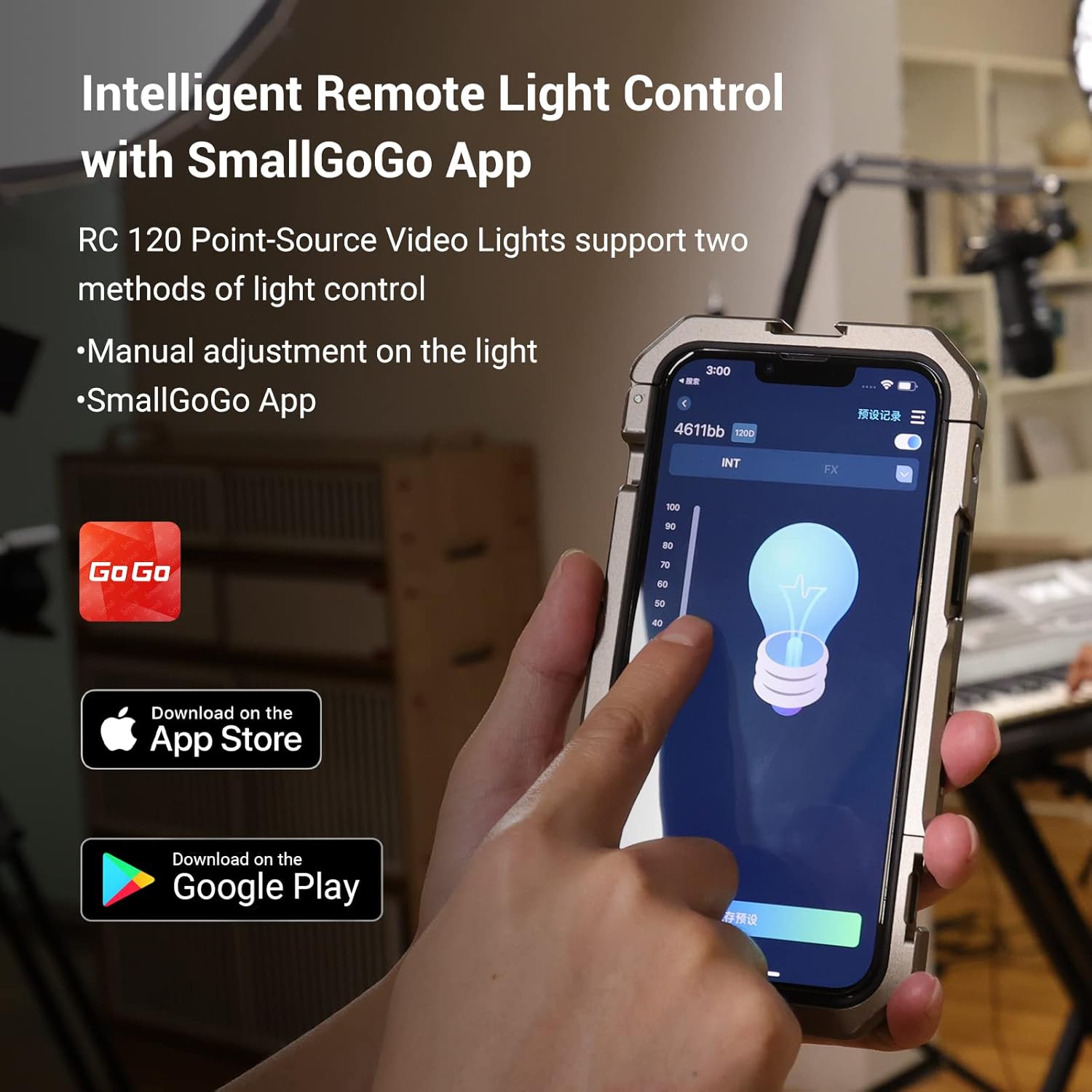 - Precise Lighting Adjustment and Intelligent Wireless Control: CRI 95+, TLCI 96+, color temperature of 5600K and 9 light effects adapt to the user's multi scene shooting needs. In addition to manual control, you can easily adjust the brightness from 0% to 100% through the mobile phone via the SmallGoGo App, and observe the data through the LED screen.