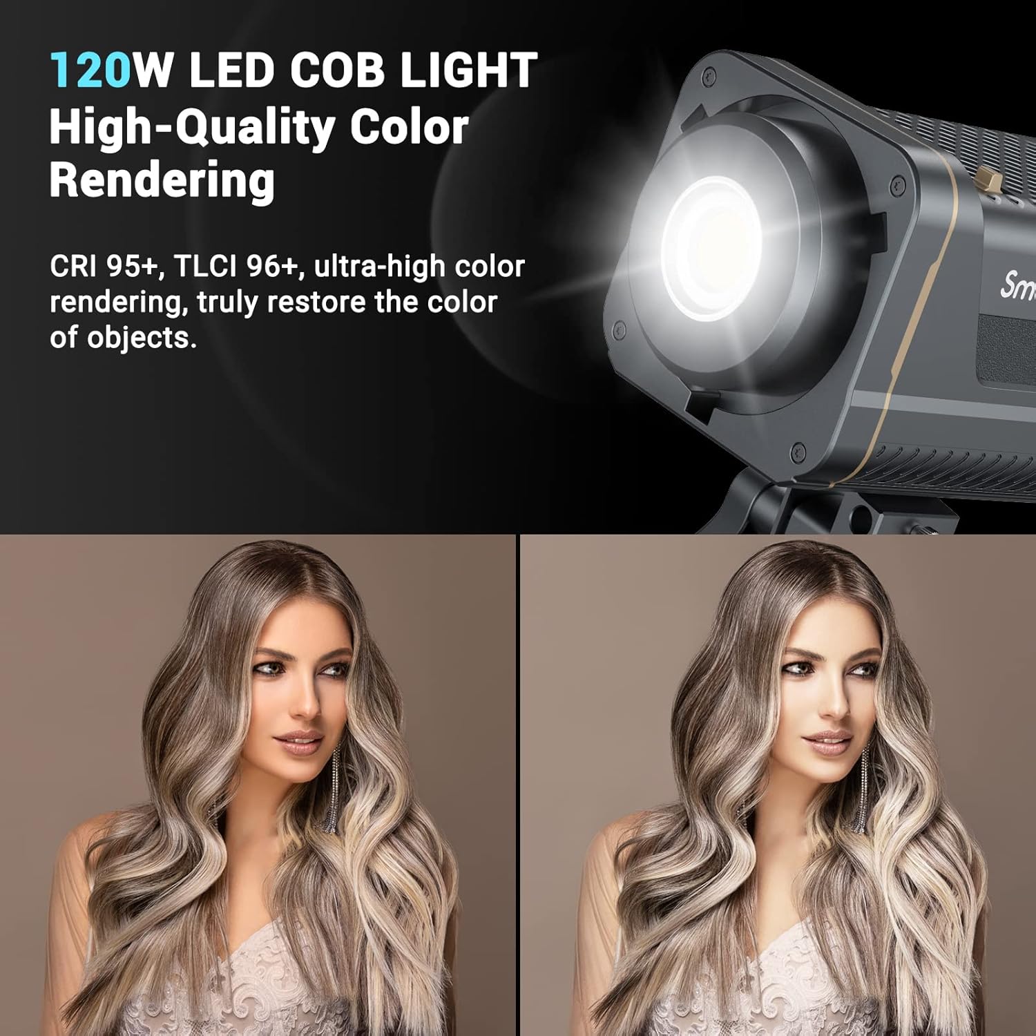 - High Brightness LED Light: The 120W light could offer 5,370 Lux@1M (3.3ft) without the reflector and 62,600 Lux @1M (3.3ft)with the hyper reflector (package include), while other ordinary 100W~150W video light can only reach 34,300Lux @1M. It's a great continuous light for Youtube videos, live-streaming, studio, photoshoots, and so on.