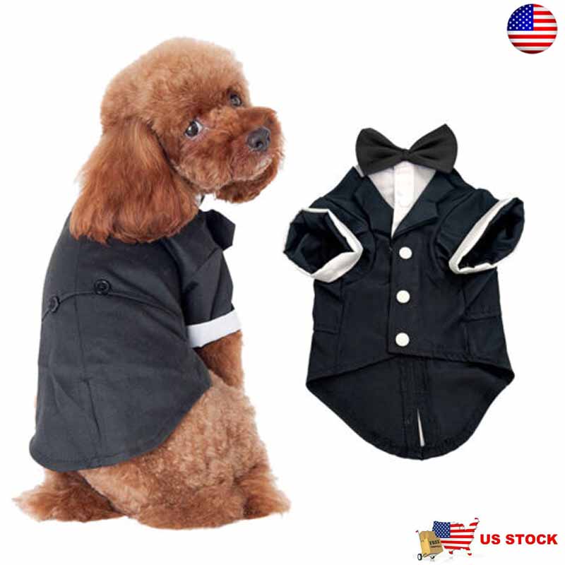 Small Pet Dog Cat Clothing Prince Wedding Suit Tuxedo Bow Tie Puppy Clothes Coat