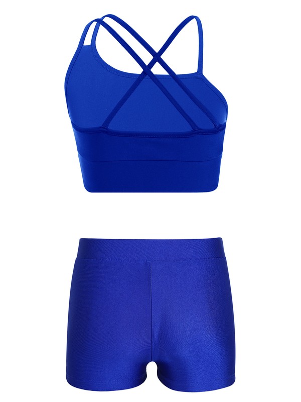 Kids Girls Asymmetrical Strappy Crop Top with V-front Waistband Shorts.