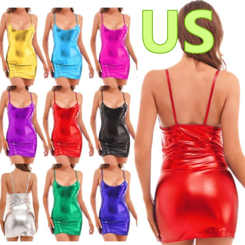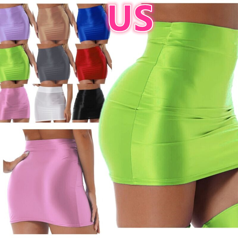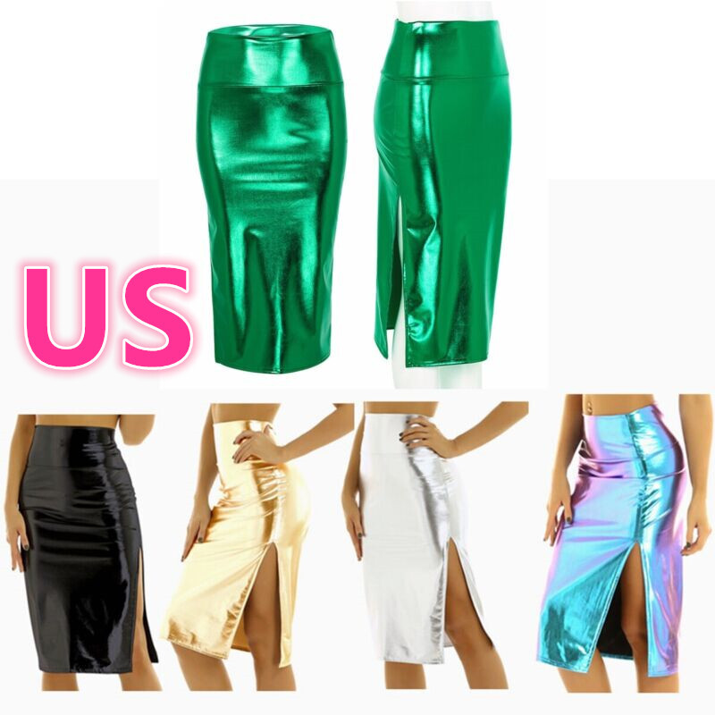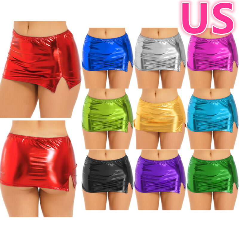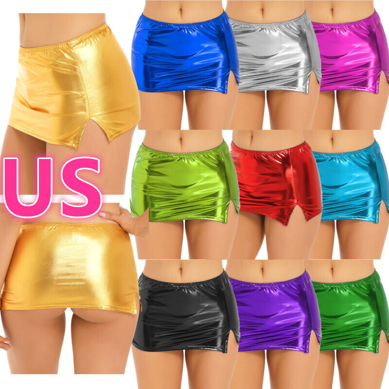 US Women Metallic Mini Skirt Bodycon Short Split Miniskirt Party Skirts Clubwear