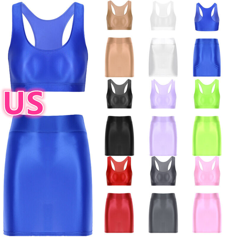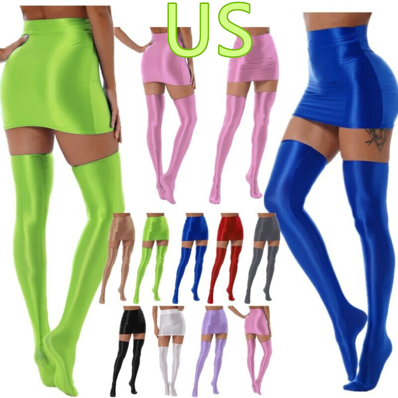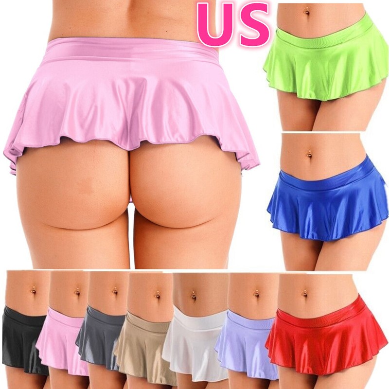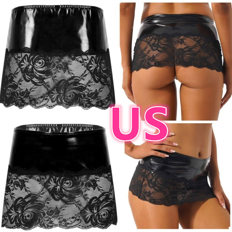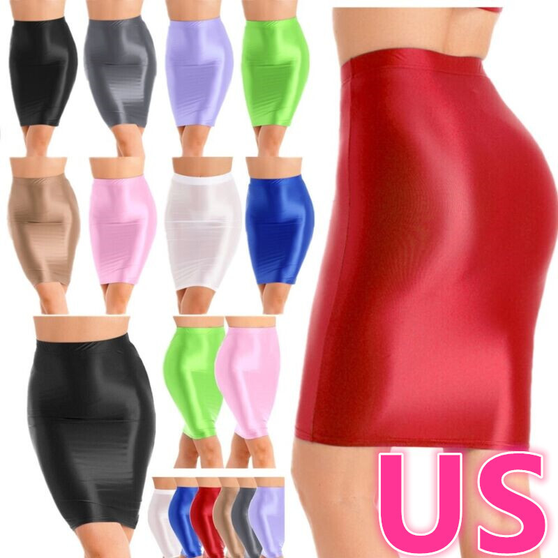 US Women Metallic Mini Skirt Bodycon Short Split Miniskirt Party Skirts Clubwear