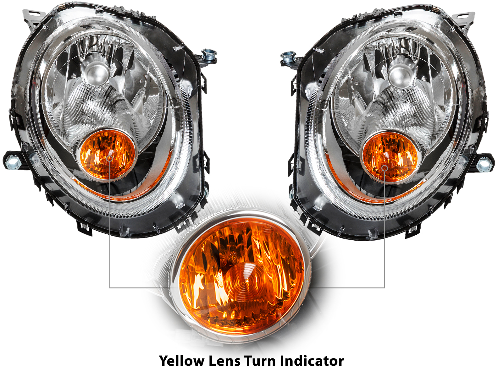 Aftermarket OEM Replacement for Mini Cooper Headlight Assembly ( Yellow Turn Signal Light )