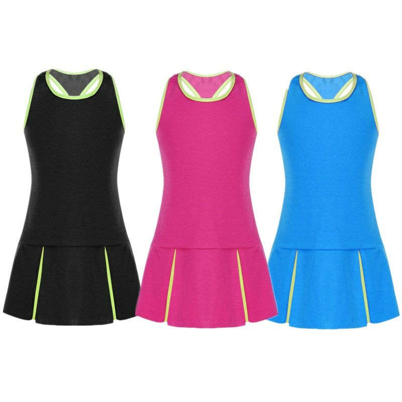 2Pcs Kids Girls Round Neck Sleeveless Open Upper Back Sport Dress and Shorts Sets.