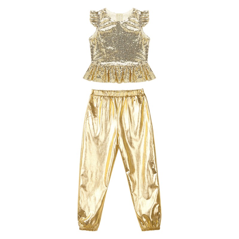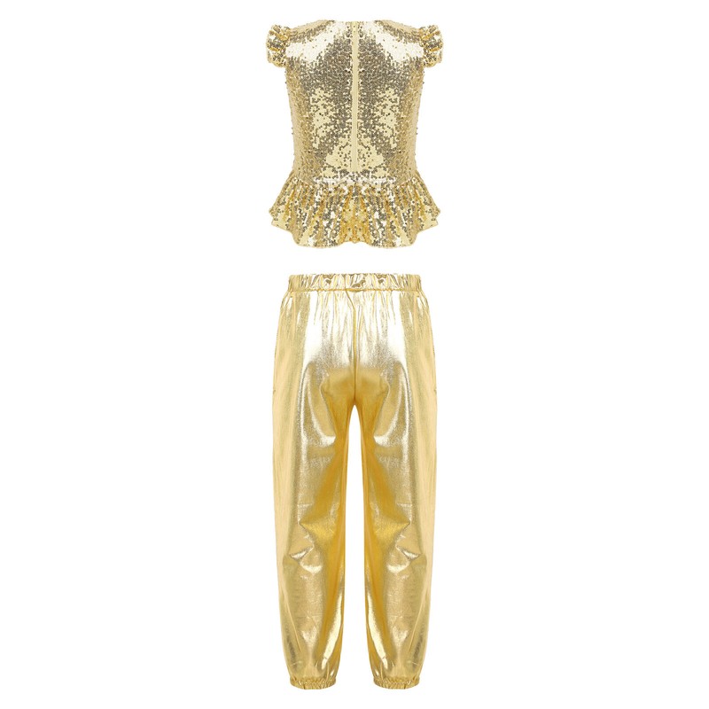 Girls Sequins Crop Tops with Pants Set Jazz Modern Street Hip Hop Dance Costumes